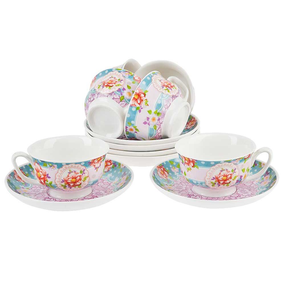 Чайный набор "Цветочные кружева" выполнен из качественного фарфора.