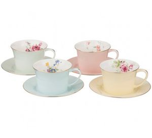 Набор рассчитан на четырех персон и состоит из четырех кофейных чашек с блюдцами.