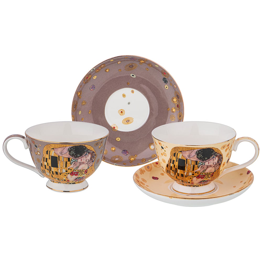 Кофейный набор из тонкостенного фарфора. Декор по мотивам картин Г. Климта. Удобная форма.