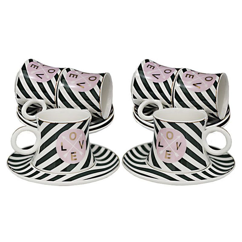 Набор рассчитан на шесть персон и состоит из шести кофейных чашек с блюдцами.