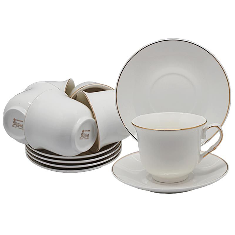 Чайный набор состоит из шести чашек и шести блюдец. Предметы набора изготовлены из высококачественного фарфора.