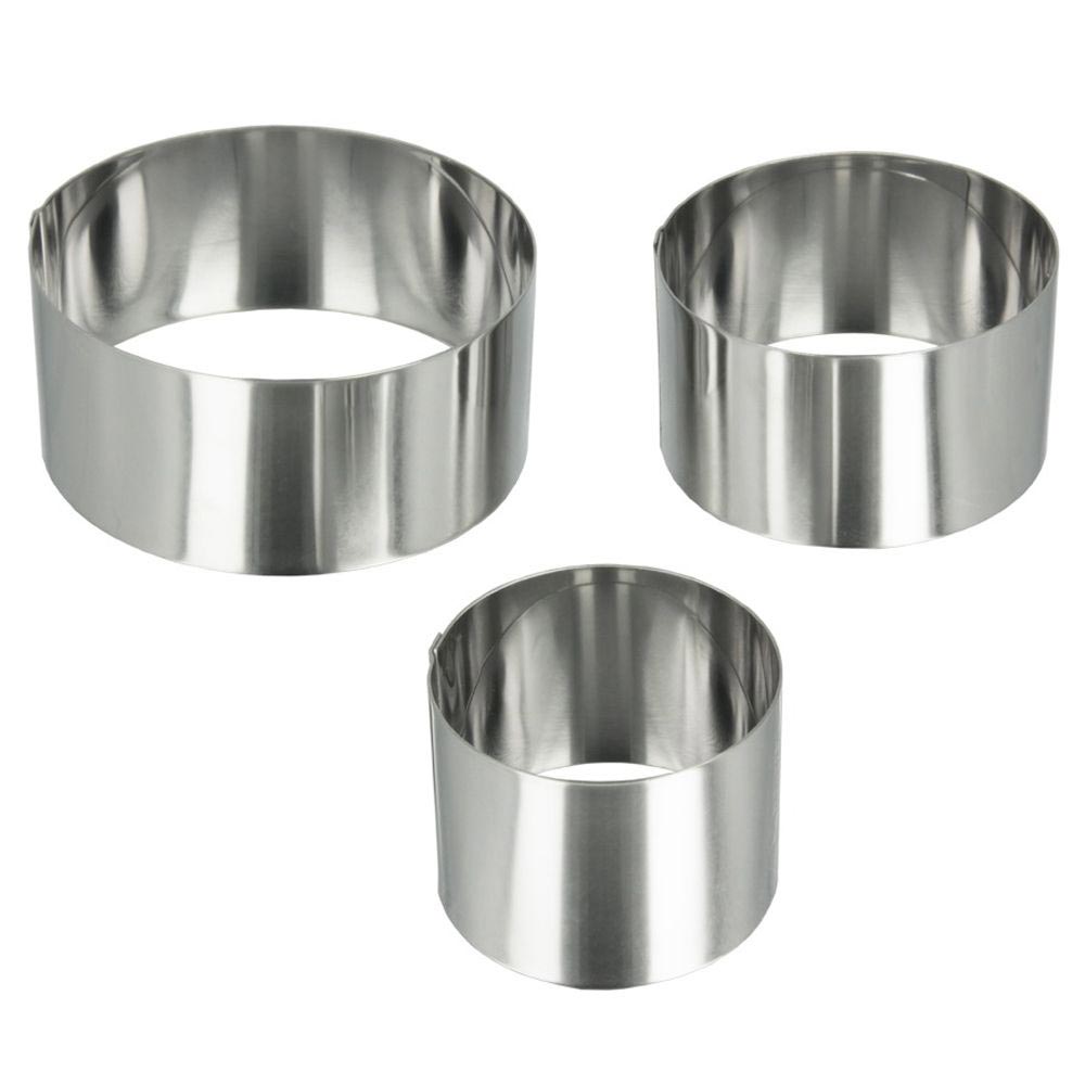Набор "Metaltex" состоит из трех неразъемных колец разного диаметра. Кольца выполнены из высококачественной нержавеющей стали. Идеальны для придания формы различным блюдам. Кулинарные формы "Metaltex" для выпечки будет отличным выбором для всех любителей бисквитов и кексов, а также заливных блюд и пудингов. С такой формой вы всегда сможете порадовать своих близких оригинальной выпечкой. Можно мыть в посудомоечной машине. Диаметр: 10 см, 8 см, 6 см. Высота стенок: 4, 5 см.