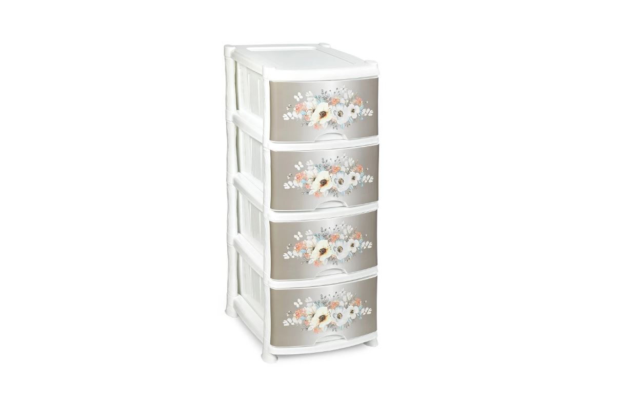 Комод из пищевого пластика с четырьмя выдвижными ящиками предназначен для хранения вещей и продуктов питания и гармонично впишется в интерьер любой комнаты. Легкий и вместительный комод поможет обеспечить порядок, избавит от разбросанных игрушек или одежды, убережет продукты от пыли и заветривания. Передние панели комода декорированы по технологии IML (вплавляемая этикетка) для создания индивидуального стиля. Не рекомендуется размещение пластикового комода вблизи батарей центрального отопления и электрических обогревателей.