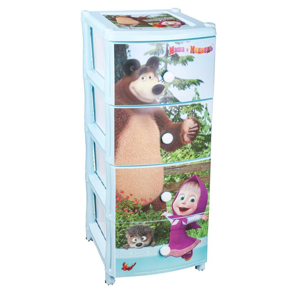 Стильный и практичный комод, декорированный образами персонажей популярного мультфильма «Маша и Медведь» заслуженно пользуется большой популярностью среди наших покупателей.