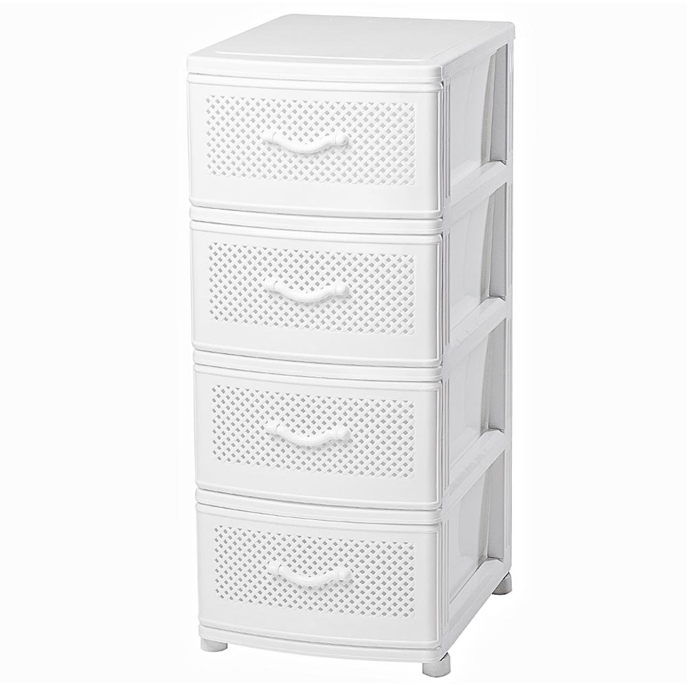 Комод "Сетка" 4-х секционный - отличный предмет мебели. Конструкция комода проста в сборке, ее вес минимальный. Изделия состоят из плотного пластика, выдерживающего высокие температуры и влажность. Такой комод прекрасно. подойдет для любой квартиры: он вместителен, края ящиков скруглены, что делает его безопасным для детей.