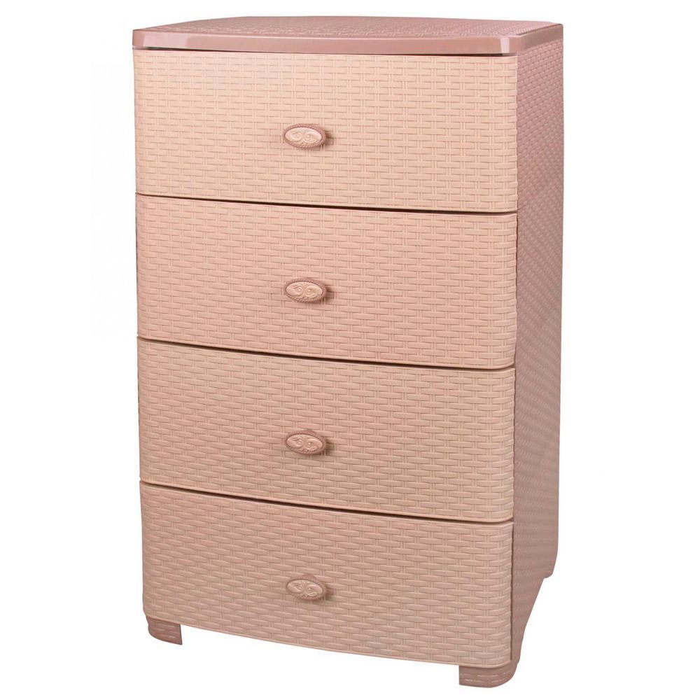 Комод "Плетенка" приятного цвета имеет четыре закрытых ящика, что позволяет использовать его для хранения небольших предметов.