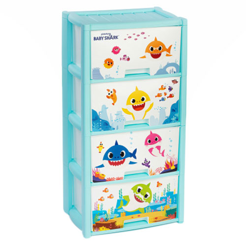 Комод, декорированный образами персонажей популярного видеоролика «Baby Shark», произведен из высококачественного и безопасного полипропилена. Особую прочность комоду придает его цельная конструкция перегородок. Комод имеет выдвижные и достаточно вместительные ящики.