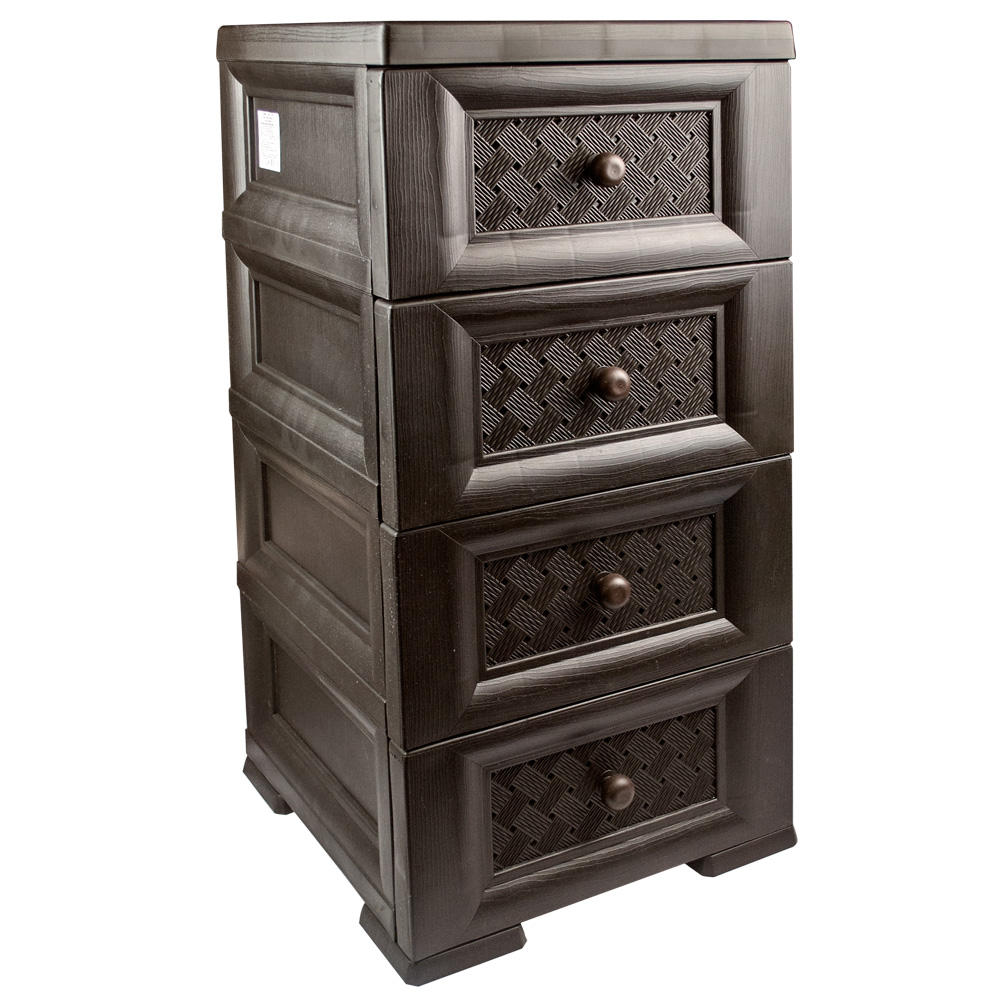 Комод пластиковый с четырьмя горизонтальными ячейками. Фасад - плетёнка.