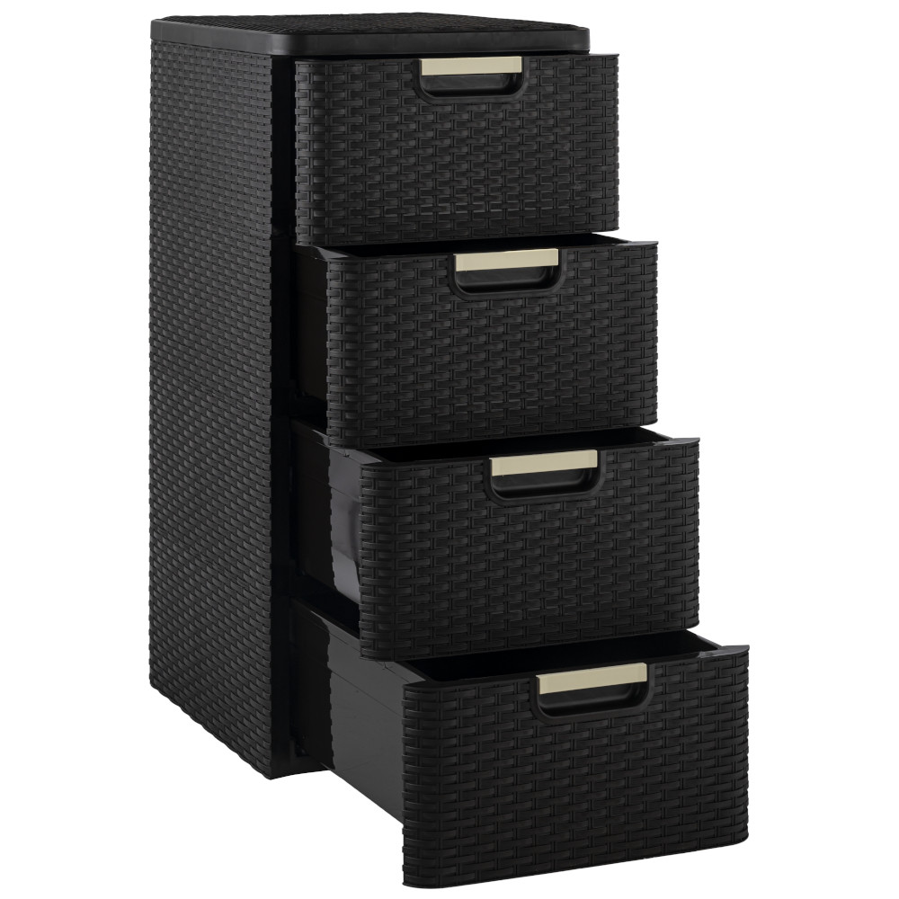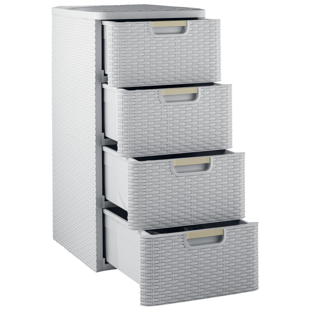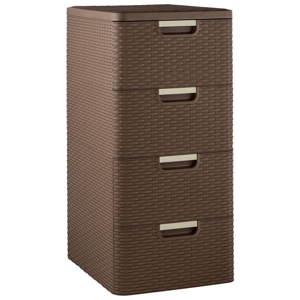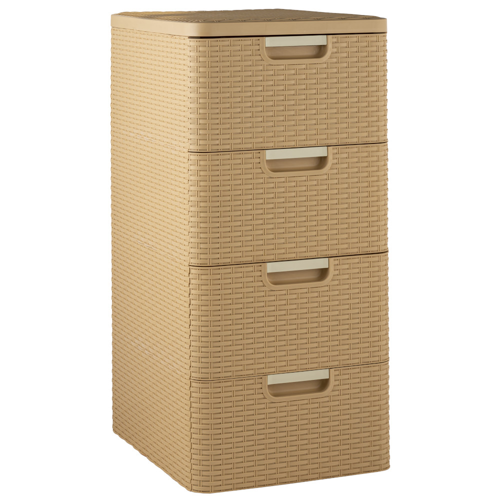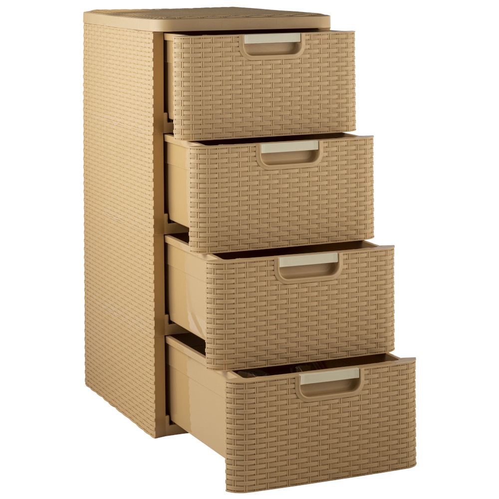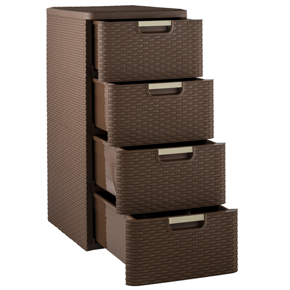 Комод Плетёнка от производителя Элластик-Пласт выполнен из высококачественного прочного пластика. У комода 4 ящичка с плавным ходом и встроенной в корпус ручкой.