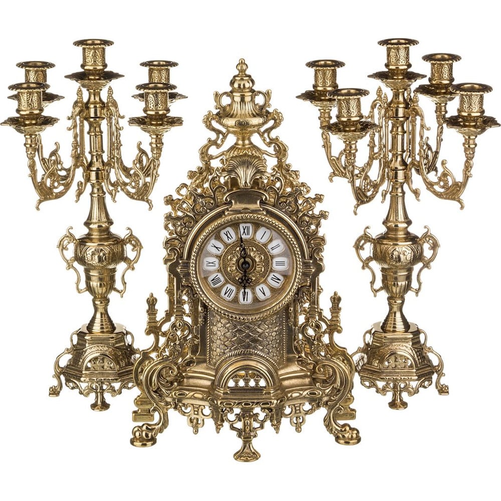 Часы комплектуются двумя классическими канделябрами на 5 свечей. Идеальный комплект для камина.