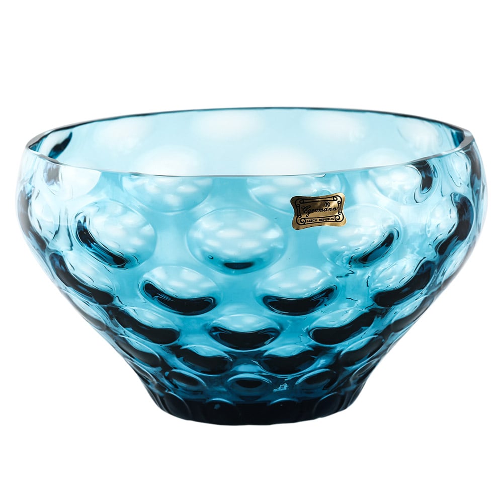 Вазочка сделана из голубого стекла с вогнутыми кругами (как соты). Диаметр 20 см.