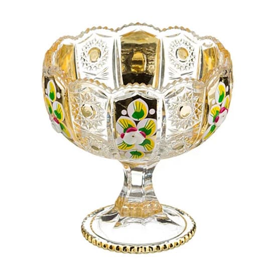 Конфетница выполнена из стекла с декором.