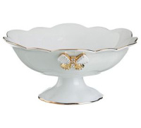 Конфетница "Venezia" изготовлена из облегченного фарфора повышенной белизны и прочности, украшена декоративным бантиком с позолотой и стразами. Изделие станет настоящим украшением вашего стола.