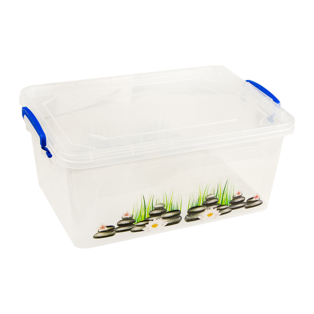 Практичная прямоугольная форма позволит легко разместить контейнер на любой полке. Удобная крышка с защелками плотно закрывает емкость.