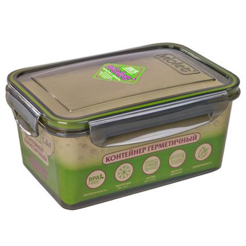 Емкость из пищевого пластика объемом 1,6 л для хранения продуктов питания и готовых блюд. Крышка оснащена 4-мя защелкивающимися замками для фиксации за корпус и силиконовым уплотнителем по внутреннему периметру. Это обеспечивает герметичное закрытие для защиты от протекания и распространения возможных запахов пищи.