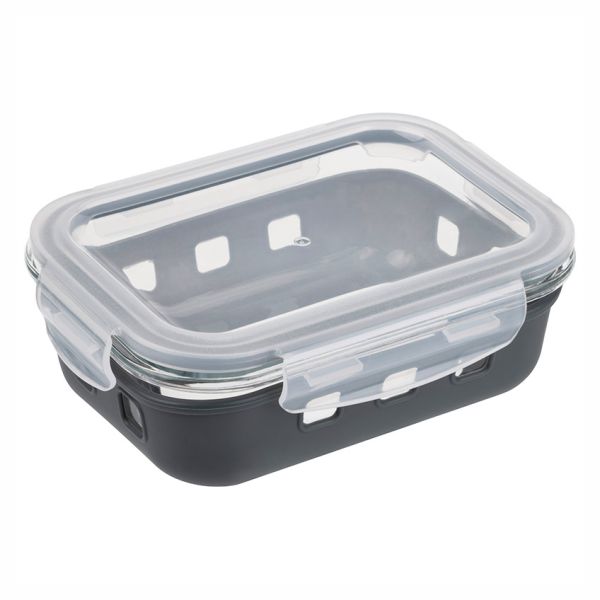 Контейнер "Massimo" выполнен из жаропрочного стекла, с крышкой с защёлками в силиконовой подставке. Толщина стекла - 4,5 мм.