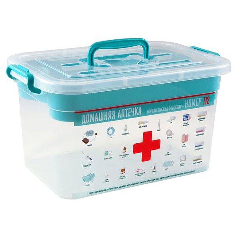 Контейнер для аптечки "Домашний доктор" выполнен из прозрачного пластика.