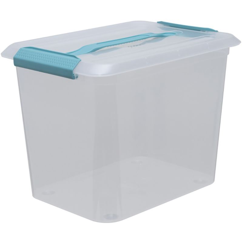 гардеробе, в детской, на кухне, в ванной, в гараже и кладовой. Прочная эргономичная ручка выдержит вес контейнера со всем содержимым и обеспечит комфорт при переноске. Боковые защелки обеспечивают дополнительную надежность закрытия контейнера, а также препятствуют проникновению пыли внутрь. Прозрачные стенки позволяют легко увидеть содержимое. Контейнер производен из высококачественного пластика. Изделие долговечно благодаря продуманной геометрии, обеспечивающей прочность при эксплуатации и транспортировке.