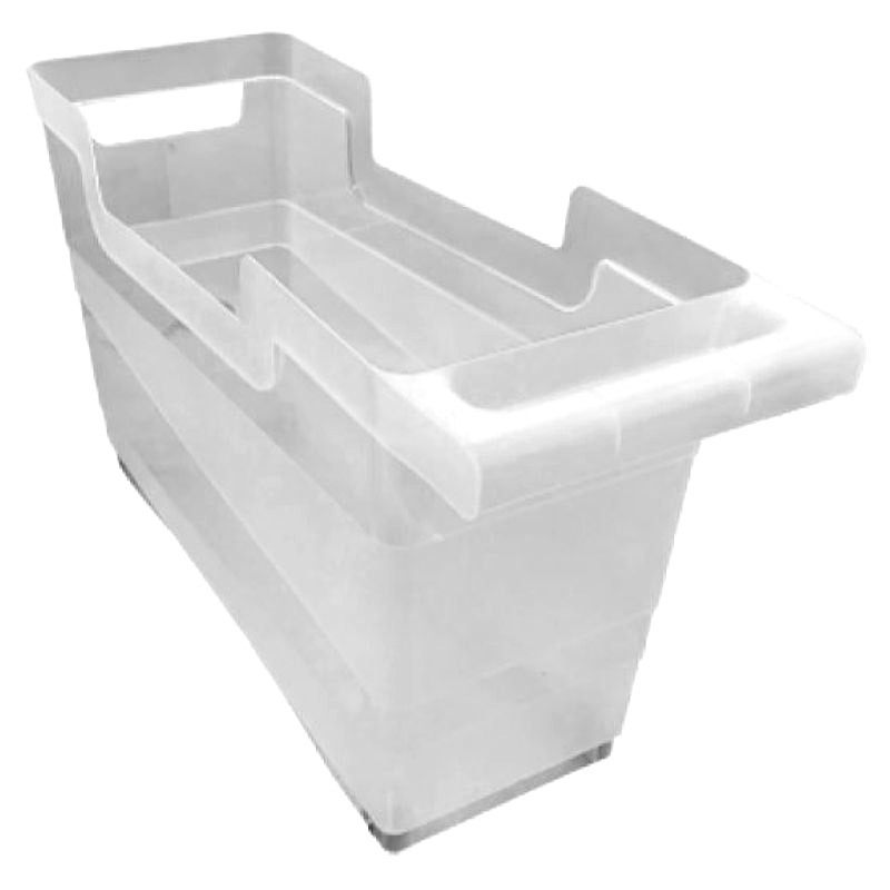 На лицевой стороне есть ручка для комфортного и легкого выдвижения и установки на полку. Контейнер оснащен маленькими колесиками. Размеры ящика 453х160х257 мм.