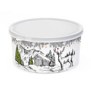 Коробка имеет универсальную круглую форму, позволяющую размещать изделия одно поверх другого, что является гарантом экономии площади.