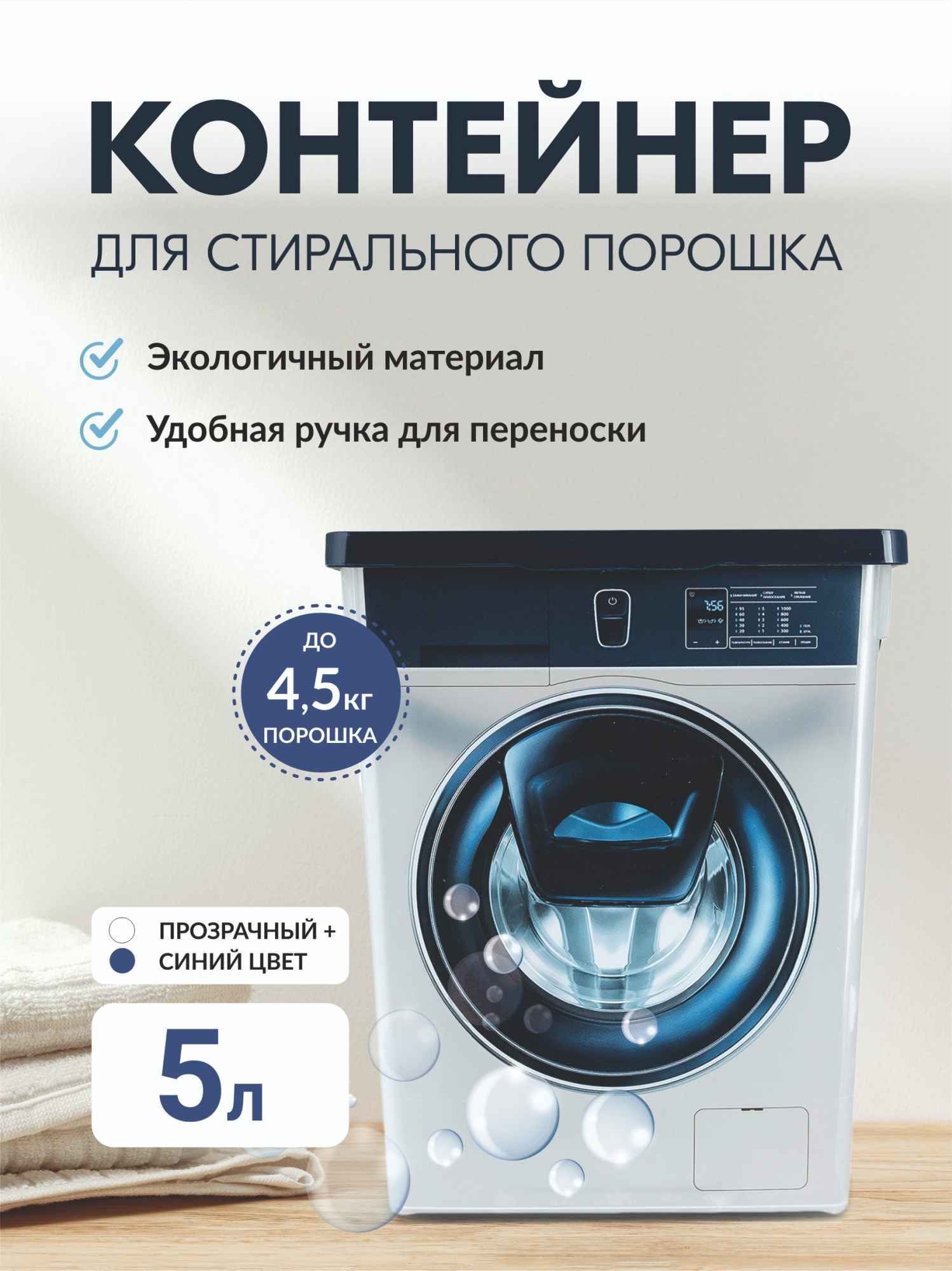 Контейнер для стирального порошка изготовлен из высококачественного пластика.