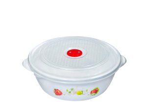 Контейнер имеет плотно закрывающуюся крышку. На крышке расположен клапан, который позволяет использовать контейнер в нескольких режимах. При закрытом клапане продукты можно хранить при комнатной температуре, в холодильнике или морозильной камере. При открытом клапане в контейнере можно разогревать продукты в микроволновой печи не снимая крышку, что предохраняет продукты от высыхания и разбрызгивания.