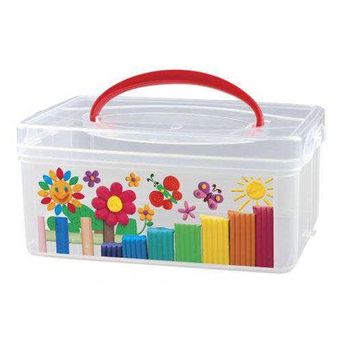 Коробка универсальная с ручкой и модным декором идеально подходит для хранения швейных и канцелярских принадлежностей, предметов творчества (пластилина, красок, разноцветных мелков).