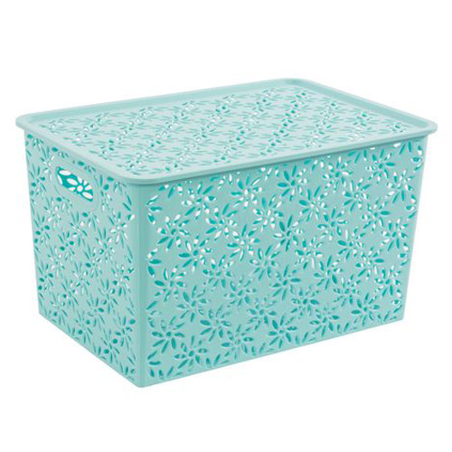 Бортик по периметру крышек обеспечивает фиксацию при штабелировании корзинок друг на друга. Узор "Ромашки" по всему корпусу и крышке придает корзинкам натуральный вид и делает их легкими и проветриваемыми.