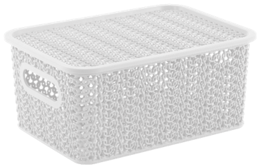 Емкость из пищевого пластика для хранения и переноски мелких аксессуаров и продуктов питания. В объеме 3л корзинки оптимальны для хранения косметики и средств личной гигиены, продуктов питания, канцелярских товаров и пр. С врезными ручками обтекаемой формы корзинки удобно перемещать. Бортик по периметру крышек обеспечивает фиксацию при штабелировании корзинок друг на друга. Узор «Вязь» по всему корпусу и крышке придает корзинкам натуральный вид и делает их легкими и проветриваемыми.