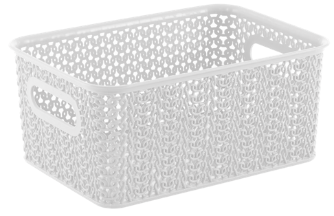 Емкость из пищевого пластика для хранения и переноски мелких аксессуаров и продуктов питания. В объеме 3л корзинки оптимальны для хранения косметики и средств личной гигиены, продуктов питания, канцелярских товаров и пр. С врезными ручками обтекаемой формы корзинки удобно перемещать. Узор «Вязь» по всему корпусу придает корзинкам натуральный вид и делает их легкими и проветриваемыми.