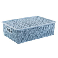 Бортик по периметру крышек обеспечивает фиксацию при штабелировании корзинок друг на друга. Узор "Вязь" по всему корпусу и крышке придает корзинкам натуральный вид и делает их легкими и проветриваемыми.