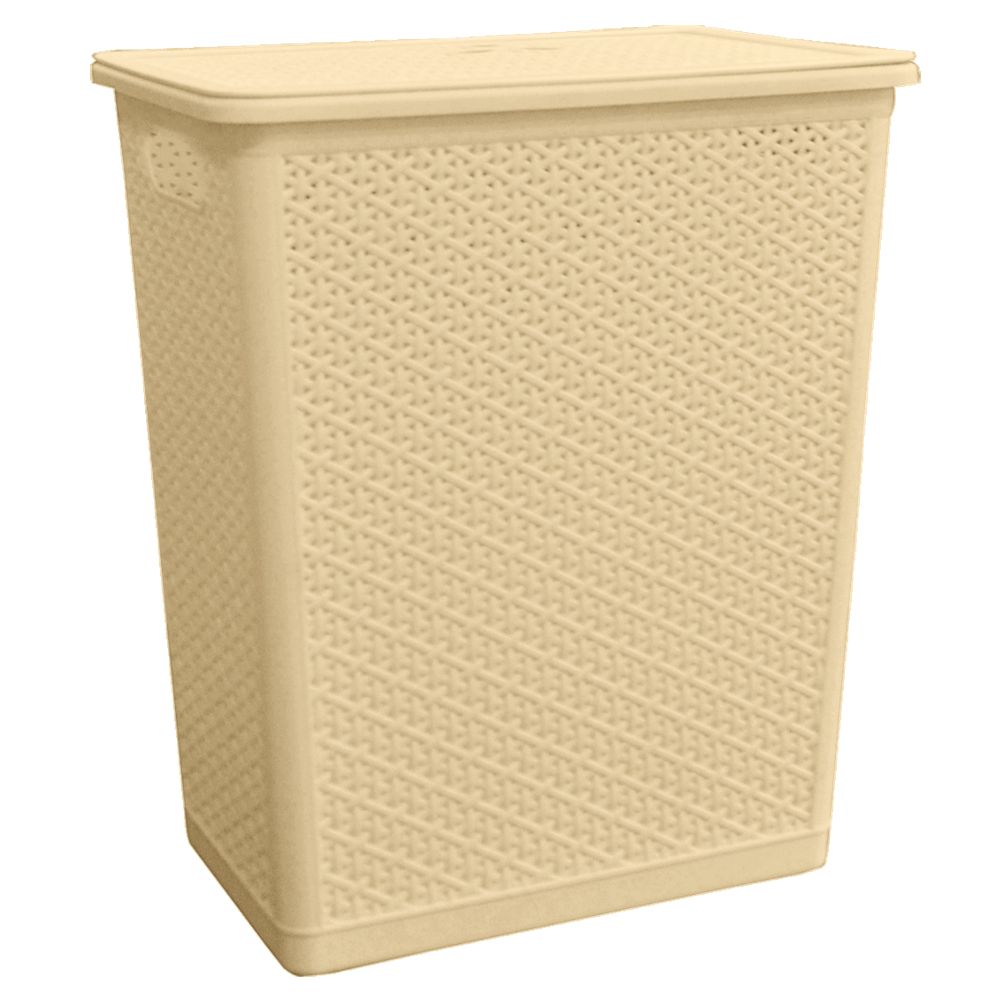 Компактная корзина для белья с плоской съемной крышкой.