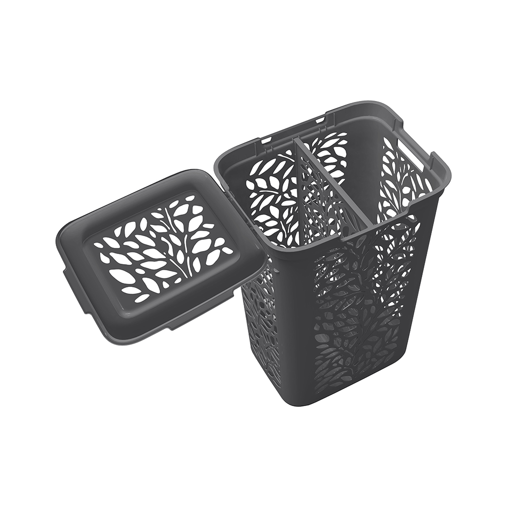 Корзина для белья с разделителем Leaves, 60л выполнена из высококлассного полимерного сырья, отличающегося прочностью и легкостью.