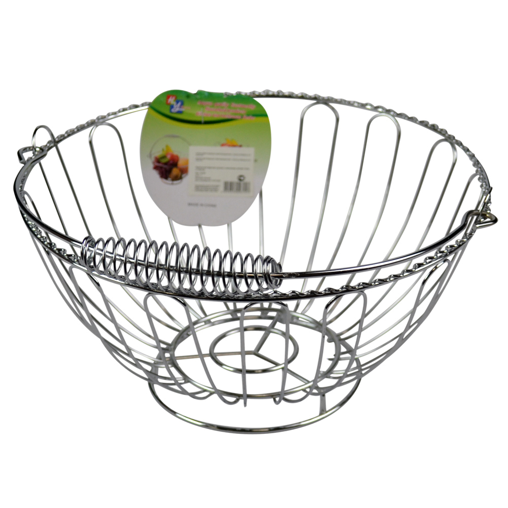 Корзина для фруктов с ручкой d24см выполнена из прочного металла и обладает оригинальным дизайном. Металлическое блюдо - это универсальное интерьерное решение для дома или офиса. Можно удобно разместить фрукты на кухне, украсить корзинкой гостиную, приемную или зал ожидания. Фруктовница из металла эстетично впишется в самые разные стили интерьера: лофт, сканди или минимализм. Удобный кухонный аксессуар для овощей и фруктов.