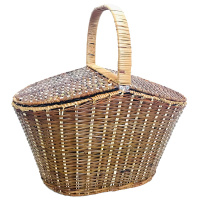 Плетена корзина для пикника с крышкой. Размер: верхняя часть: 31х21 см, дно 20 х 13 см, высота - 21 см, высота с ручкой - 37 см. Прочная удобная овальная корзина ручной работы. Изготовлена корзинка из натурального материала - лоза. Очень прочная корзина плетеная с металлическим каркасом, выдержит до 7 КГ! Корзина для хранения с двойной крышкой, прикрпеленной по середине и открывающейся с боков. Отлично подойдет корзина для похода за грибами и ягодами. Корзина с широкой ручкой может быть использована, как упаковка для подарка. Плетеная корзина для фруктов и овощей, в которой можно также хранить различные вещи и предметы быта.