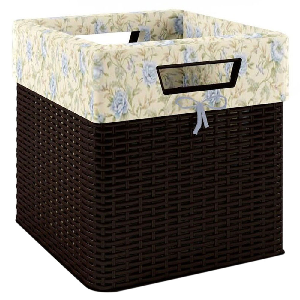 Корзина плетеная с тканевым мешком изготовлена из прочного пластика. Вместительная, есть удобные ручки для переноски.