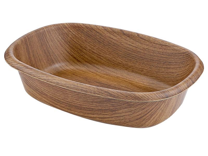 Блюдо для хлеба и других продуктов изготовлено из ударопрочного полистирола с имитацией дерева.