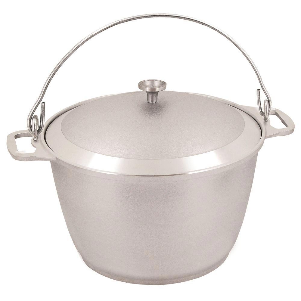 Котел походный пригоден как для профессионального, так и для индивидуального использования, идеален для приготовления пищи на охоте, рыбалке и в лесу. Тушение и поджарка за счет толстостенных стенок и дна происходит быстро, с сохранением естественных ароматов блюд.
