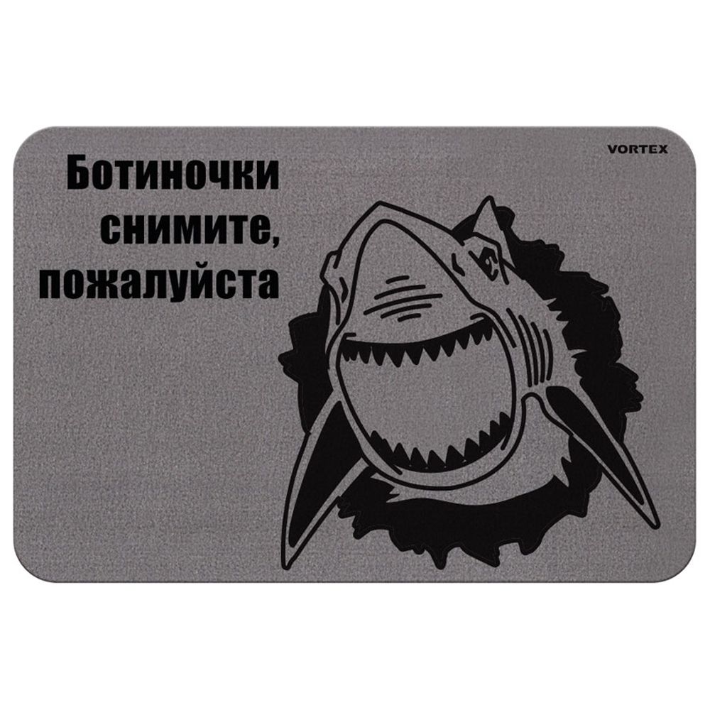 Коврик придверный размером 40х60см резиновый Vortex с забавным рисунком и надписью "Ботиночки снимите".
