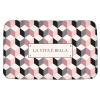 Стильный аксессуар для ванной и туалета с геометрическим рисунком. Коврик из мякой микрофибры создает необходимый комфорт для ног, уберегает пол от лишних брызг. ПВХ покрытие обратной стороны коврика препятствует скольжению.
