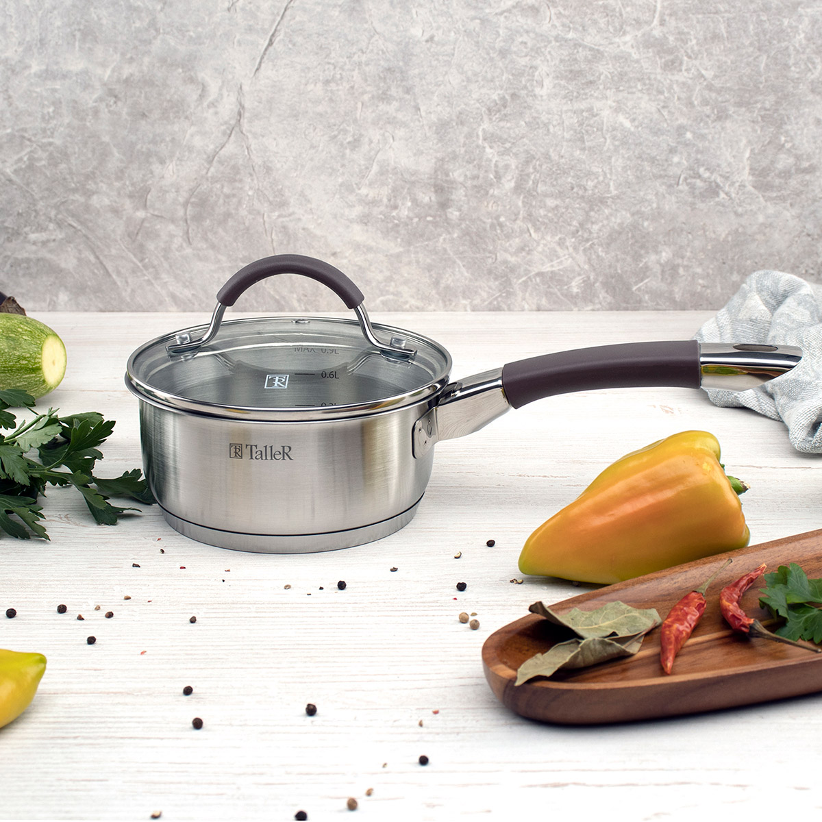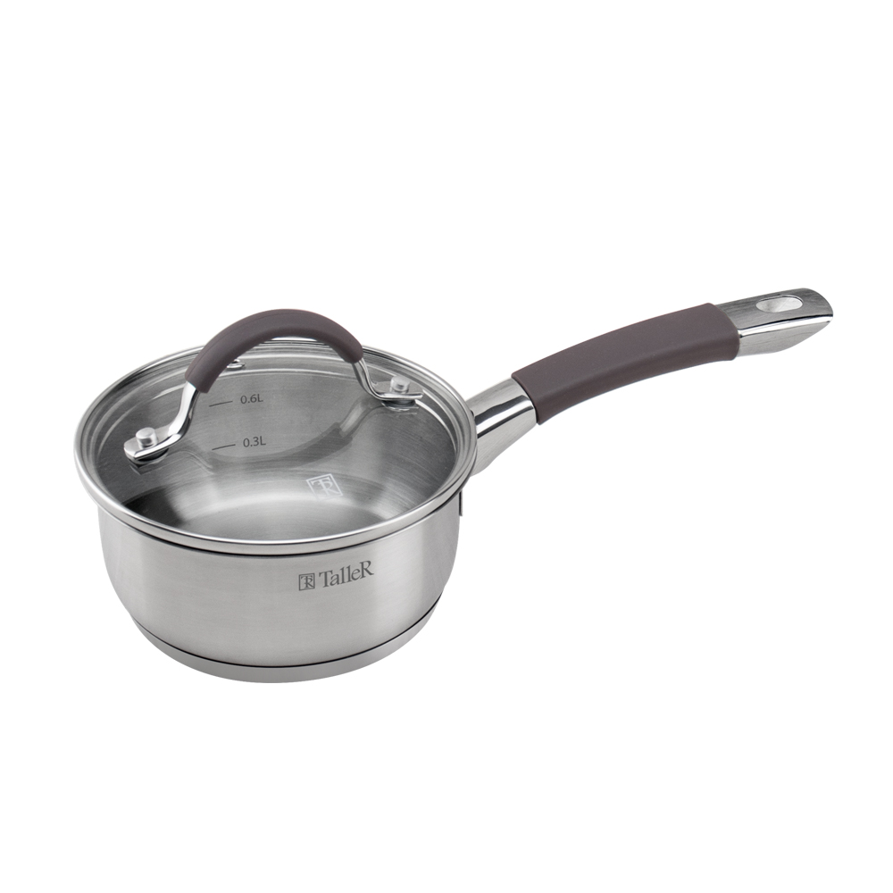 Этот небольшой, но функциональный ковш объемом менее литра станет незаменимым помощником в приготовлении соусов, каш для ребенка, яиц или для быстрого подогревания молока. Его габариты составляют 14 см в диаметре и 6,5 см в высоту без учета крышки. Изделие выполнено из высококачественной нержавеющей стали 18/10 с практичным матовым покрытием как с внешней, так и с внутренней стороны. Благодаря капсулированному дну нагрев происходит равномерно, а пища не пригорает. На внутренней поверхности предусмотрены удобные отметки литража. Эргономичная ручка из нержавеющей стали дополнена мягкой силиконовой вставкой коричневого цвета, которая обеспечивает надежный и комфортный хват даже влажными руками и предотвращает выскальзывание. В комплекте идет жаропрочная стеклянная крышка со стальным ободом и специальным отверстием для выхода пара, позволяющая контролировать процесс приготовления. Ковш совместим со всеми типами плит, включая индукционные, однако не предназначен для использования в духовом шкафу. Уход за ним предельно прост: посуду можно мыть в посудомоечной машине.