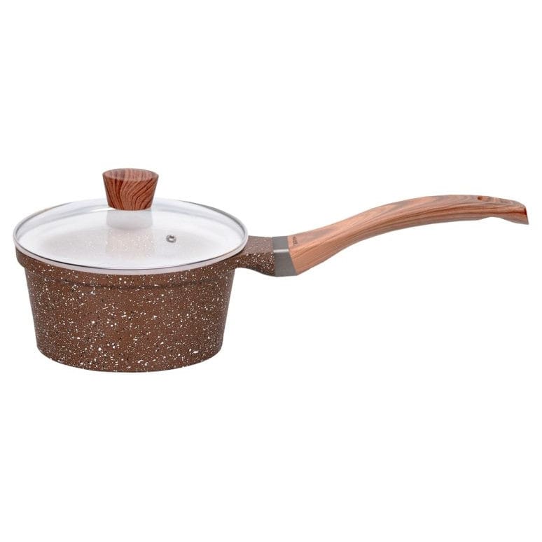 Приварные ручки из бакелита с покрытием Soft-touch, стилизованная под натуральный материал (дерево). Гравировка логотипа на ручке выжиганием. Пламегаситель из алюминия, окрашенного в тон. Подходит для индукционных плит.