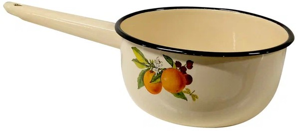 Ковш изготовлен из высококачественной стали с эмалевым покрытием.
