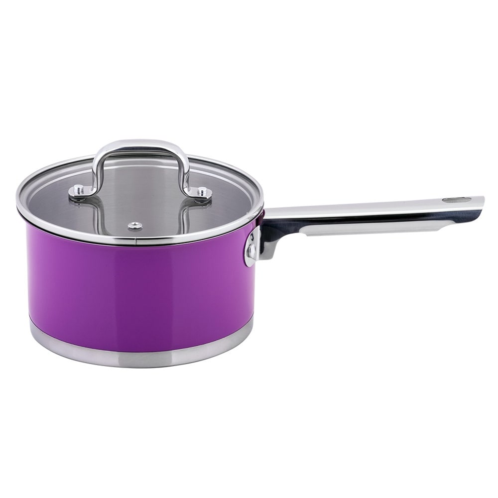Ковш Esprado "Sombra" 16х8,5 см высококачественной нержавеющей стали с крышкой из стекла и стали и стальной ручкой. Внутри зеркальная полировка с отметками литража для точного соблюдения рецепта, снаружи цветное покрытие. Try-ply bottom - трехслойное дно с термоаккумулирующей прослойкой из алюминия. Крышка из термостойкого стекла с паровыпуском.