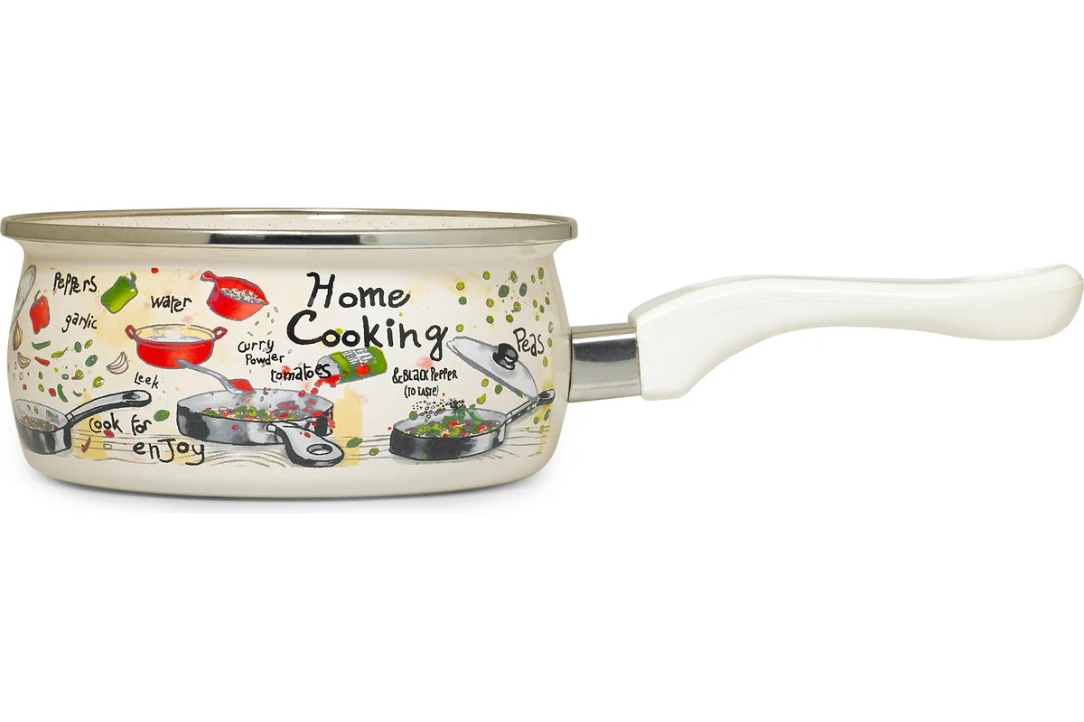 Ковш METROT Гурман 1,6 л изготовлен из углеродистой стали. Покрытие состоит из трех слоев стеклоэмали голландской фирмы Ferro. Стеклоэмаль - долговечный гипоаллергенный материал.