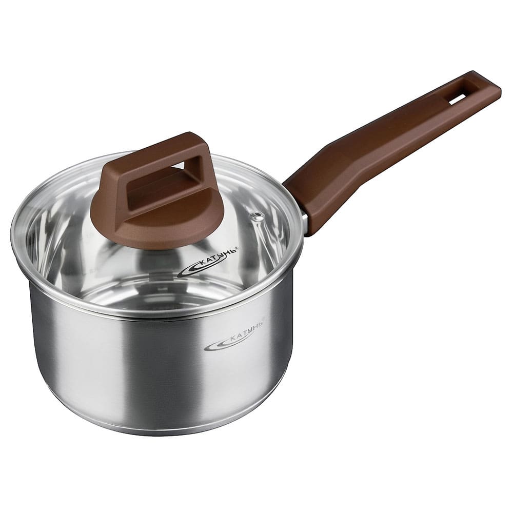 Ковш Катунь Венера изготовлен из нержавеющей стали без покрытия, внутри изделия нанесена мерная шкала. Ручка изготовлена из термостойкого материала с покрытием soft-touch. В комплекте с ковшиком крышка из жаропрочного стекла с металлическим ободком и пароотводом, бобышка также изготовлена из термостойкого материала с покрытием soft-touch.
