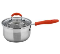 Ковш Tezoro TEZL16SE109 из высококачественной нержавеющей стали с крышкой из стекла и стали и стальной ручкой с силиконом.