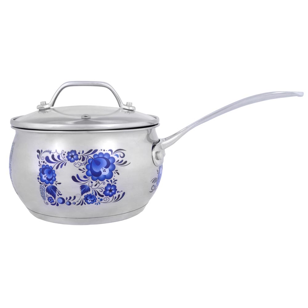Ковш "Hitt"Гжель" изготовлен из высококачественной нержавеющей стали.