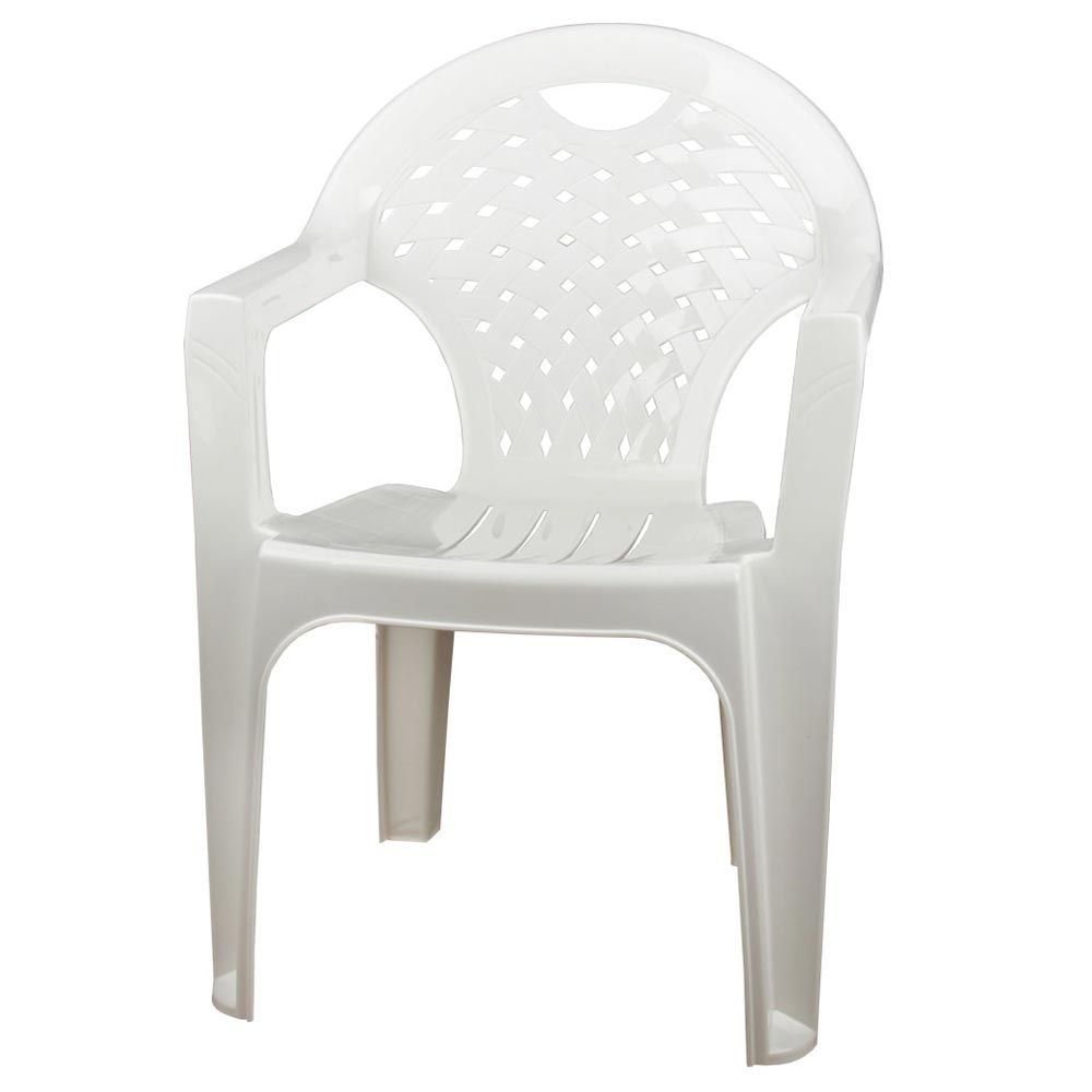Пластиковое кресло простое и практичное.