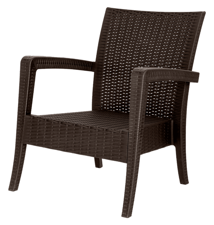 Красивое садовое кресло-диван Практичное сочетание кресла и дивана. Украсит любое дачное пространство, мансарду загородного дома или даже большую веранду кафе. Материал устойчив к ультрафиолету, температурным перепадам, влаге, морозу. Комфортная плетеная спинка обеспечивает уют. Устойчивые и надежные ножки не расходятся даже под большой нагрузкой. Максимально кресло-диван может выдержать вес до 250 кг. Купить кресло-диван— значит решить проблему размещения гостей для отдыха на открытом воздухе.